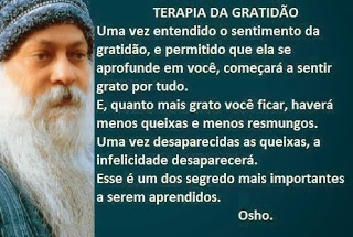 Quando uma pessoa te irritar, observe o motivo e pense: por que será que ela me irrita tanto? É difícil entender mas você vai descobrir que tem muito de você nesta pessoa e ela está te dando a chance de melhorar. Seja grato! Seja grato por seus pais, sua família, seus amigos. Seja grato por seu emprego ou pelo emprego que esta surgindo para você. Sim, agradecer atrai. E já que tudo acontece quando estamos preparados, se ainda não aconteceu é porque ainda não estamos prontos.